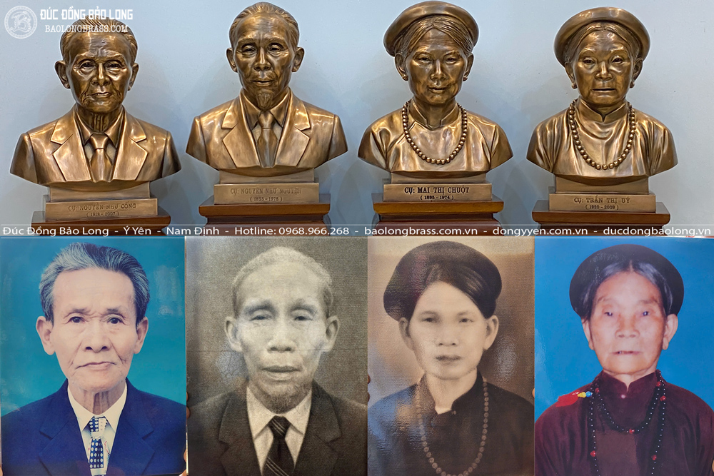 Chế tác tượng đồng chân dung Cụ Bà, Cụ Ông bằng đồng đỏ