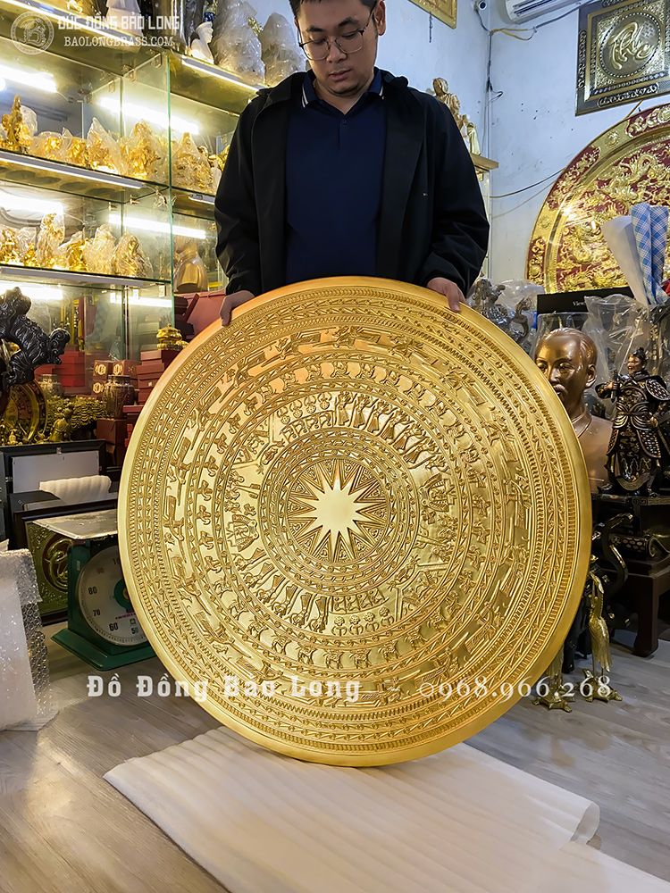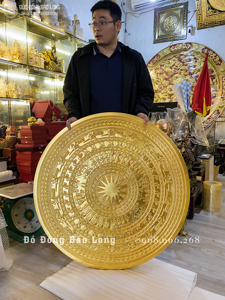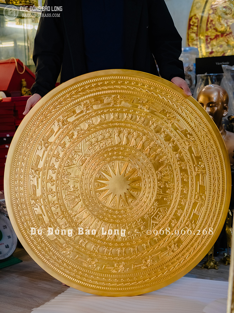 Mặt Trống Đồng Đúc Dát Vàng ĐK 1m phù hợp treo tại phòng khách, văn phòng làm việc