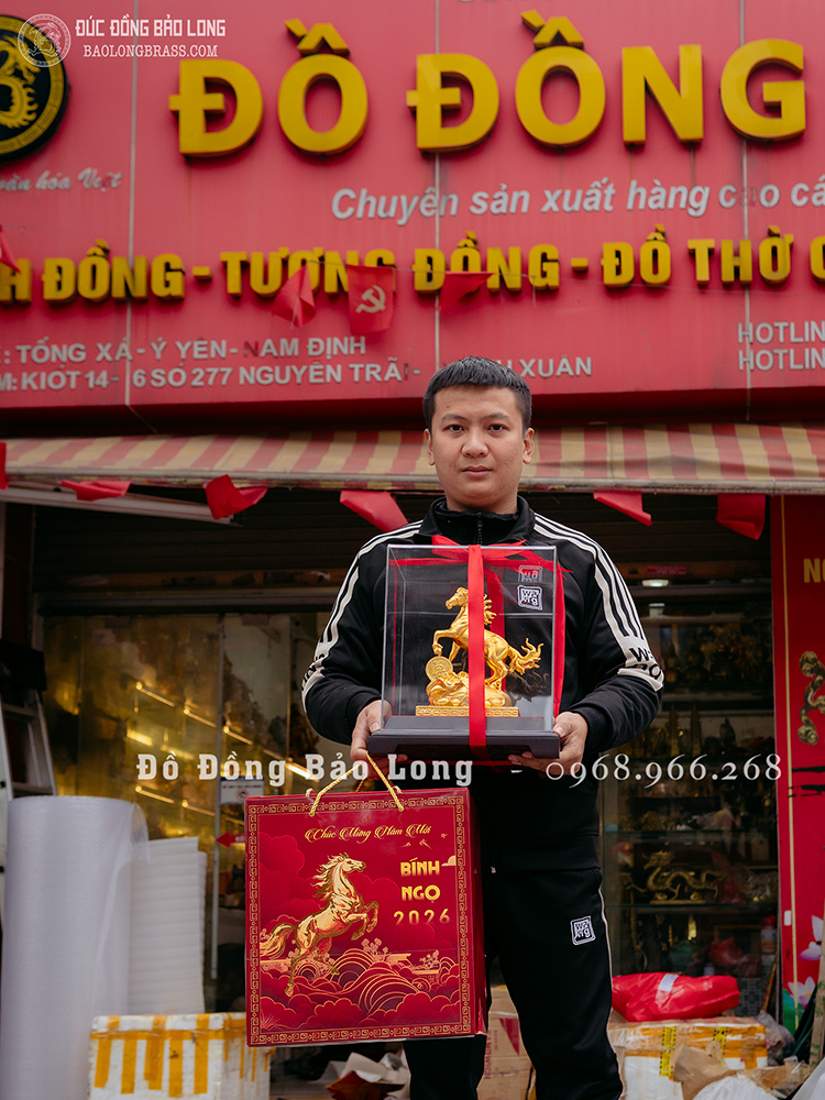 Cơ sở Đúc Đồng Bảo Long mới đây đã chế tác tượng Ngựa phong thủy bằng đồng thau. Pho tượng được chế tác thủ công hoàn toàn. Từng chi tiết, đường nét, thần thái đều được các nghệ nhân chế tác tỉ mỉ, tốn nhiều thời gian mới hoàn thành.