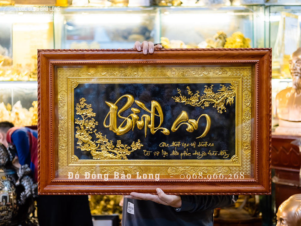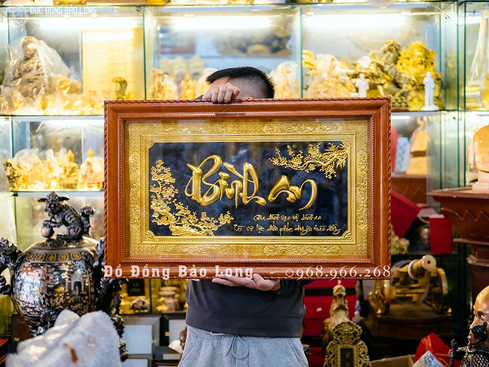 Mô tả Tranh Chữ Bình An Mạ Vàng Khung Gỗ KT 50*80cm