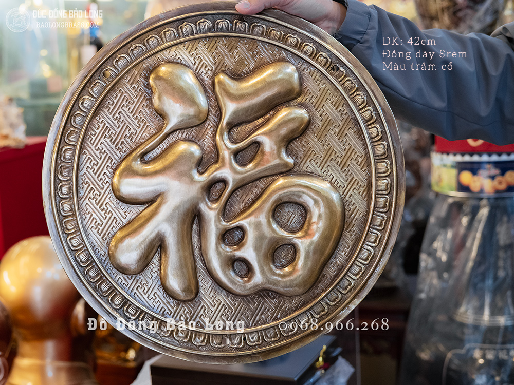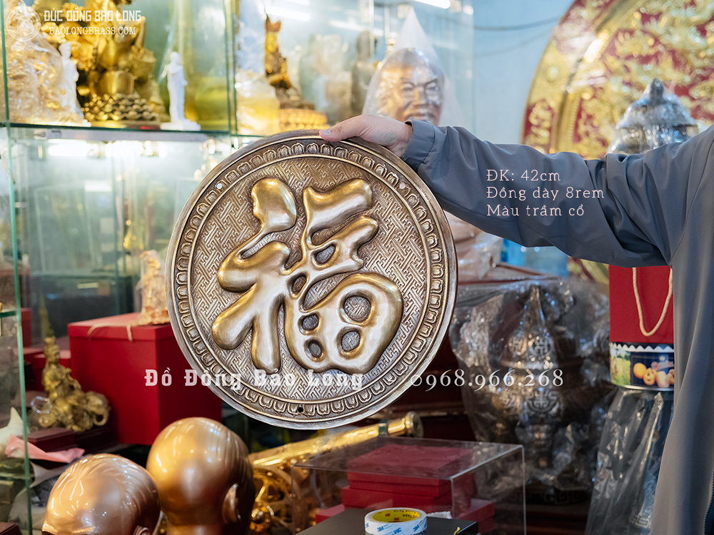 Sử dụng Tranh chữ Phúc khổ tròn bằng đồng ĐK 42cm